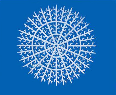 半軟性填料又稱為“雪花片”填料,材質(zhì)為PP、PE,由注塑機(jī)一次注塑成型。該填料較適合于冷卻塔。它具有比表面積大、利用率 高、空隙可變不堵塞、適用范圍廣、造價(jià)低、運(yùn)費(fèi)少等優(yōu)點(diǎn),近年來已廣泛地用于印染、絲綢、毛紡、食 品、制藥、石油化工、造紙、麻紡、醫(yī)院、含氰待沸水處理中。